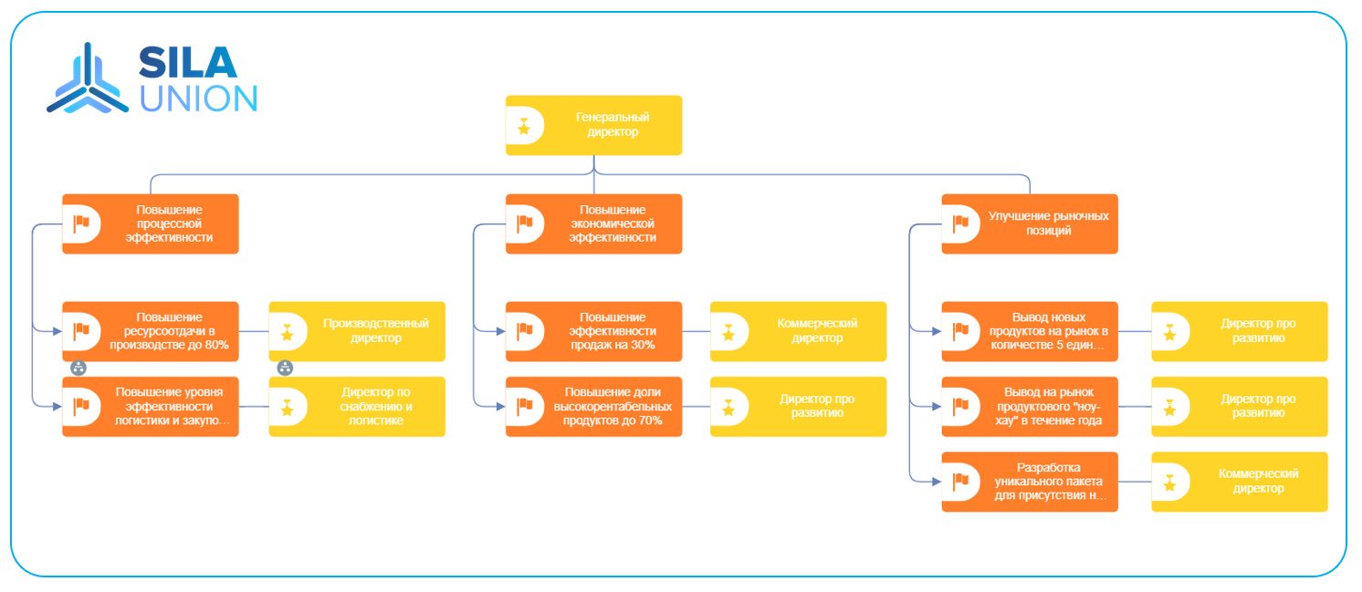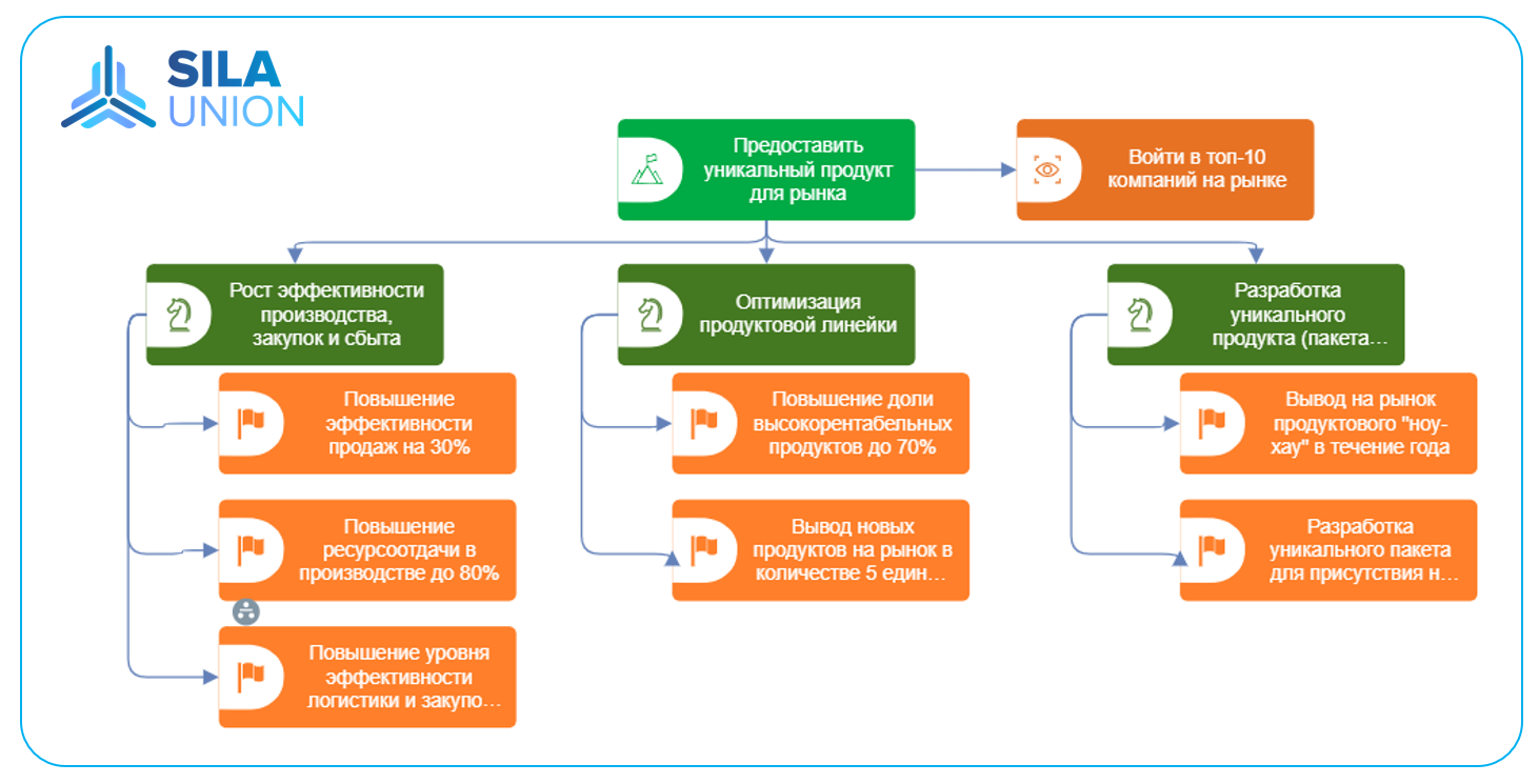 3. Разработать цели в области качества. SILA Union позволяет проектировать дерево целей и показателей, сопровождая стратегическое управление.